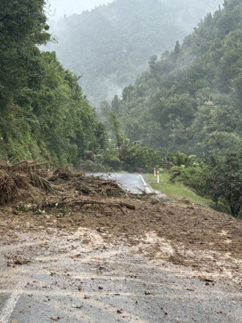 About 40 other people were caught between slips on the side of the road between Oponae and Mātāwai, they were not so lucky. They were gradually picked up by small helicopters, evacuated to a camp site from where the large defence chopper was able to pick them up. But it would have been a wet, cold, hungry and frightening experience for most of them, being stuck on the side of the slipping road with no communications for most of the day.