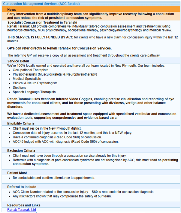 Taranaki clinicians can now refer to Rehab Taranaki for ACC concussion services via BPAC.